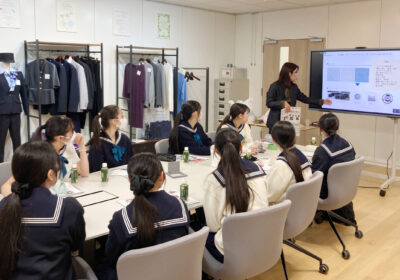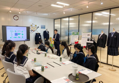 今年度、中高生徒会は「制服リサイクル」企画に取り組んでおり、9月には本校の制服生地を取り扱っているニッケ、同じく縫製を手がけているアカツキ商事株式会社の社員様を学校にお招きして、繊維や衣料について考える環境教育プログラム「ウールラボ」を受講しています(https://tjk.jp/mh/blog/17705/)。