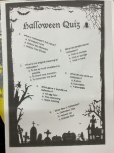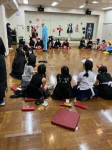 英語の授業で、ハロウィンパーティーを行いました。子どもたちは、仮装を楽しみながら英語に親しみました。本校では、毎年行われている特別授業です。