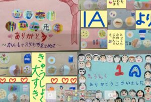 11月21日(金)、TV朝会にて「感謝の会」を行いました。これは、勤労感謝の日を前に、学校でお世話になっている方々へ感謝の気持ちを伝えようという取組です。先生、事務、給食、用務、都バスの方々へ各学級で作成したメッセージカードを上映しました。