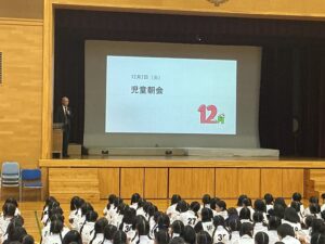 2025/12/023.11を忘れない11月末、私は研修で宮城県石巻市立大川小学校を訪れました。東日本大震災で津波に襲われ、児童74名、教職員10名の尊い命が奪われました。児童朝会では、画像を交え防災意識を高める視点で話をしました。話の内容は以下の通りです。12.2 児童朝会
