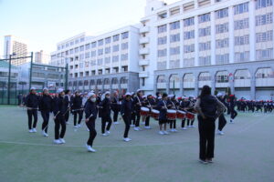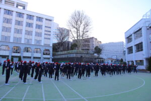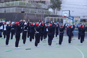 今学期初めての体操朝会がありました。校庭の気温は3度。寒い朝でしたが、力いっぱい、しかも元気に「ラジオ体操第2」に合わせてからだを動かしました。