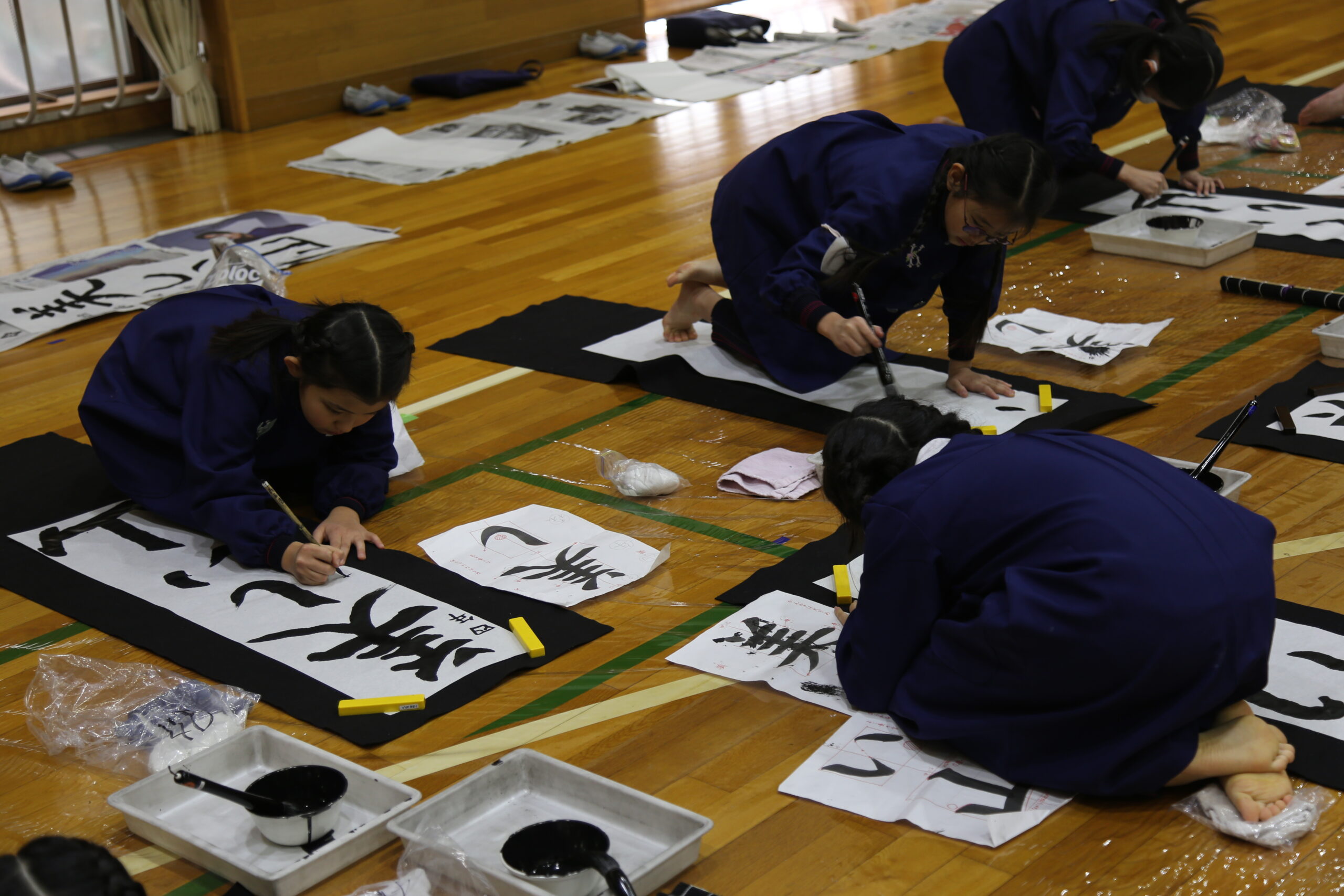 1月27日(火)は書き初め大会。1,2年生は教室で硬筆、3年生~6年生は体育館で毛筆の作品づくりに取り組みました。会場はピリッとした緊張感の中、各自が作品づくりに励みました。どんな力作がみられるか、展示が楽しみです。