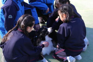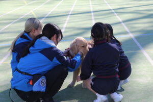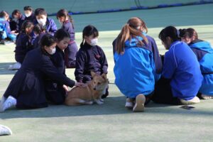 1月29日(木)、国際動物専門学校 シモゾノ学園さんのご協のもと、2年生が犬とのふれあい体験教室を実施しました。小型犬から大型犬までのワンちゃんたちと触れ合うことができました。動物愛護の気持ちが育つとともに、動物と関わる仕事を目指している方の姿を目にすることによって、キャリア教育につながることを期待しています。