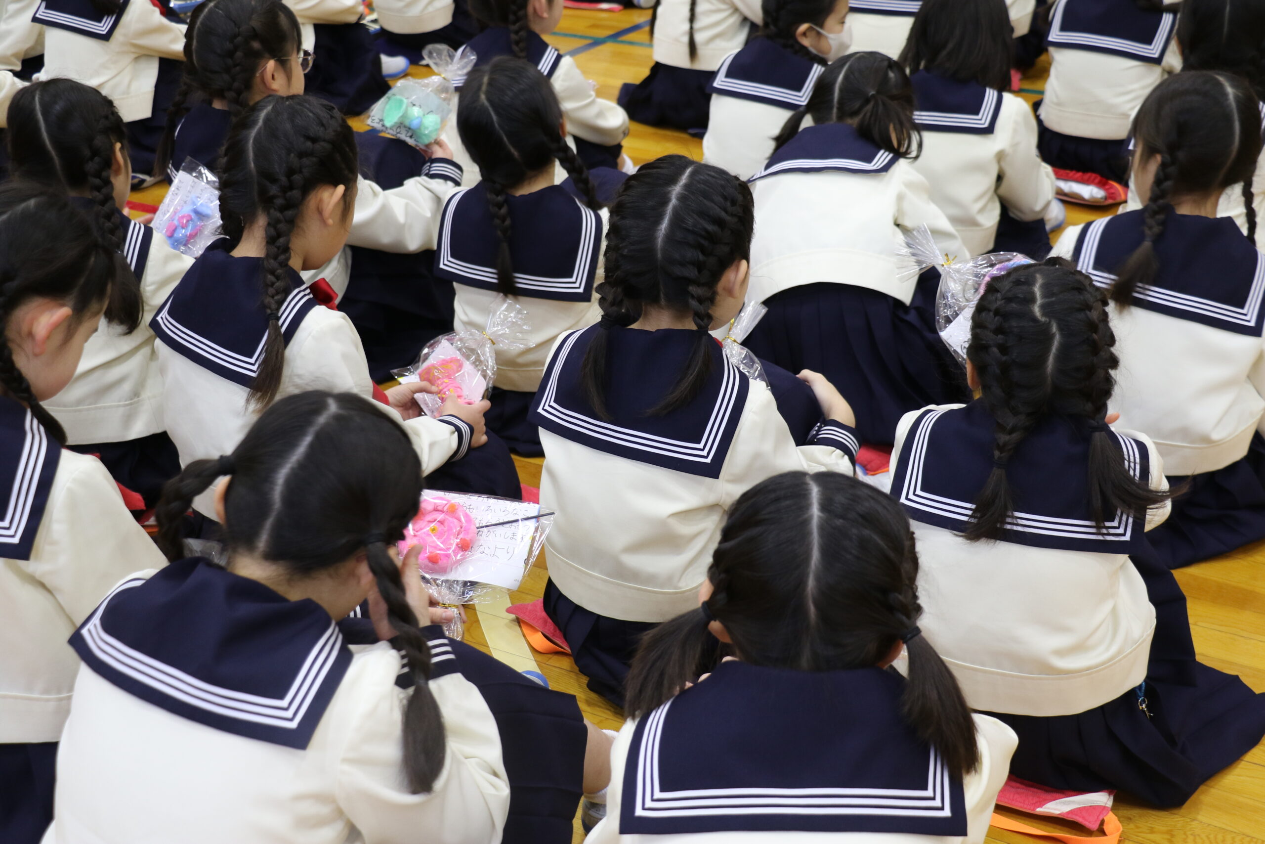 3月3日(火)。今日は1,2年生で「ひなまつり会」を行いました。それぞれ歌を披露した後、1年生から2年生へ1年間お世話になったお礼としてプレゼントが送られました。最後はみんなで「ひなまつり」を歌い、楽しい時間を過ごしました。