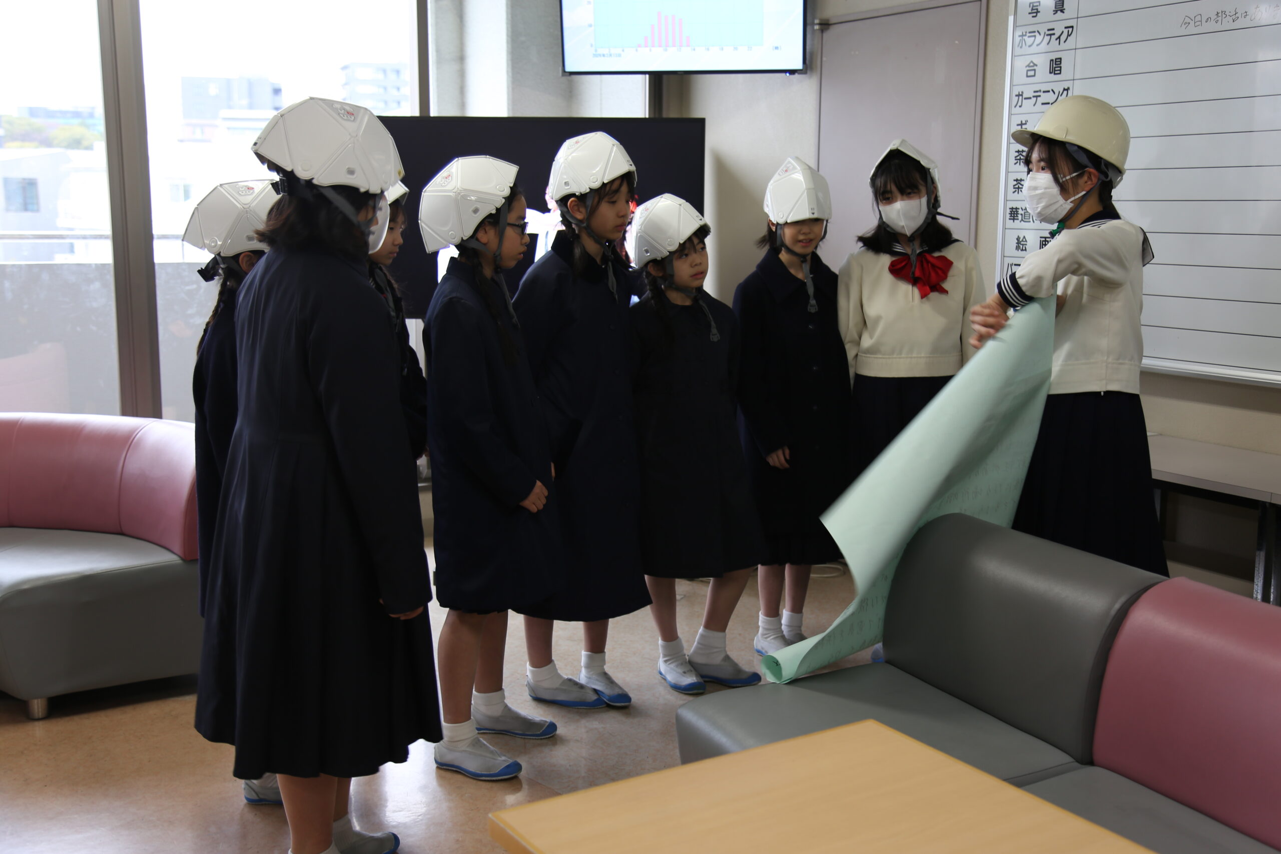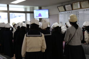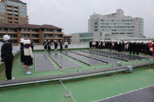 3月13日(金)、5年生のソーラーパネル見学。中高校舎屋上に設置されているソーラーパネルについて、中高生のソーラーパネル委員会のお姉様方から説明していただきました。設置の目的やパネルの仕組みについて、よい学びの場となりました。