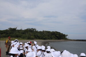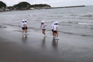 最終日は、宿舎前の浜辺を散歩しました。この頃には3日間で学んだ海の生き物の名前や特徴を口にする子も多く、その姿はまるで小さな海の博士のようでした。