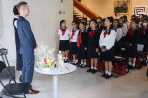 10月21日に、4年生は「とびら」(国際理解教育)の一環として、近隣にあるチェコ大使館を訪問しました。大使館の厳かな雰囲気に少し緊張した様子の子どもたちでしたが、大使館の方のお話を熱心に聞いていました。